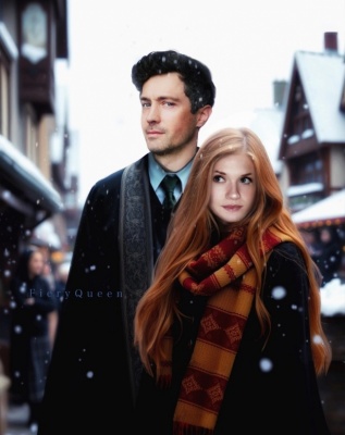 Родольфус и Беллатриса Лестрейндж танцуют вместе на морском побережье в сполохах огня.